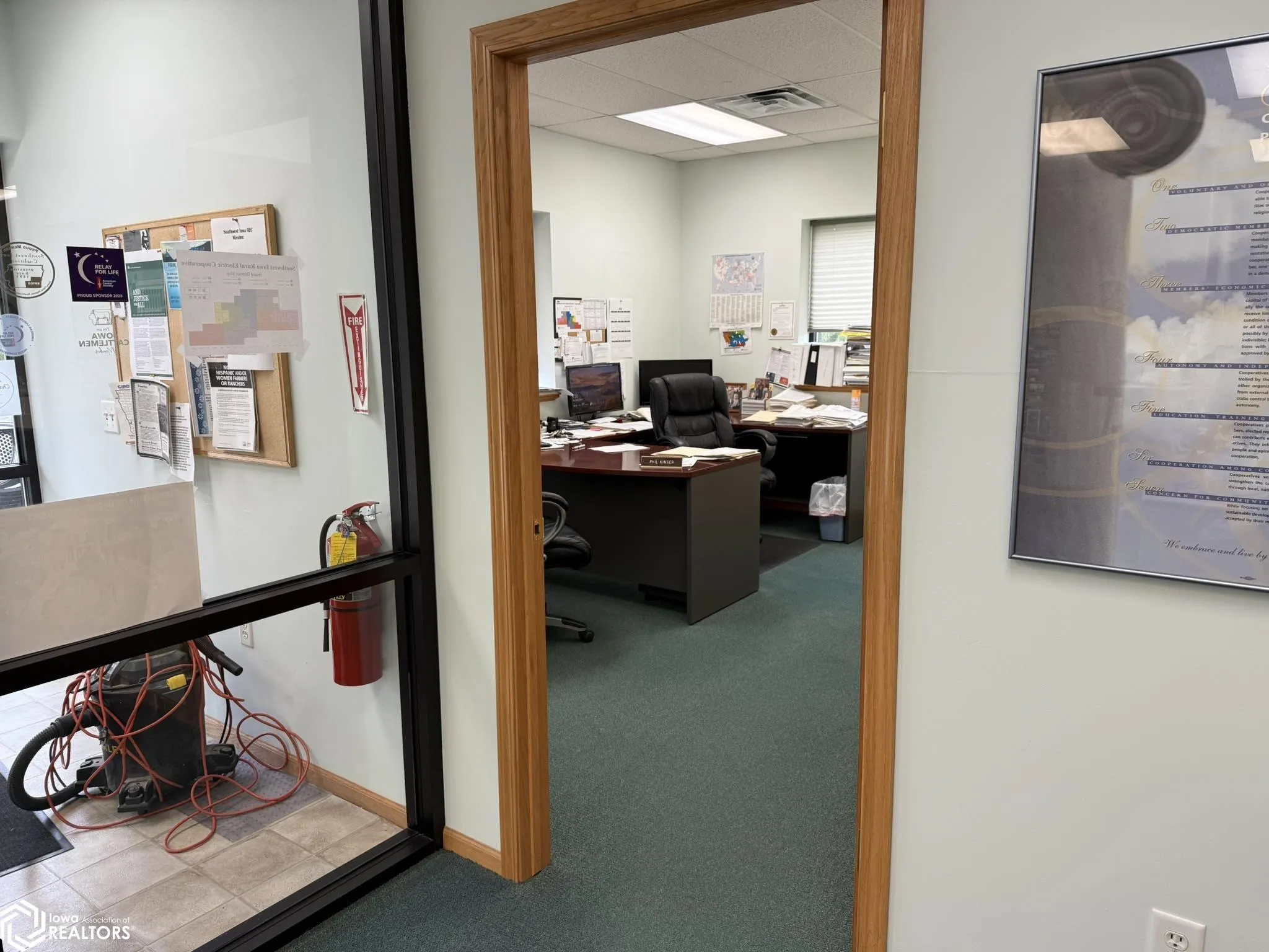 Prime Commercial Property off Hwy 148 – 1801 Grove Ave, Corning, IA Positioned on over 4 acres of land right off Highway 148 at the edge of Corning, this highly sought-after commercial property offers unmatched visibility, functionality, and infrastructure for a wide variety of businesses. This site features over 10,000+ square feet of versatile space, with both finished office and industrial/shop facilities. The property boasts geothermal HVAC, in-floor radiant heating throughout the main shop, outdoor wash bay with drain, and extensive concrete parking with drive-through space on a paved & graveled lot. Main Office Building (~2,500 sq ft): • Three private offices • Large executive conference room with kitchenette/break area • Two separate restrooms • Fully encased concrete fireproof vault room • Central heating/cooling • Brick-accented façade with professional curb appeal Main Shop (~4,000 sq ft): • Heated with in-floor radiant system • Oversized power overhead doors (12’ x14’) for large equipment access • Steel frame construction with reinforced concrete flooring • Metal-lined interior and insulated structure • Industrial-grade electrical service and lighting Workman’s Shop Addition (~4,400 sq ft): • Additional office space, meeting room, restroom • Heated workshop bay • Large cold storage area Additional Features: • Total site size: 4.1 acres +/- • Reinforced concrete and additional graveled rear lot • Geothermal system EXCLUDED: Communications Tower