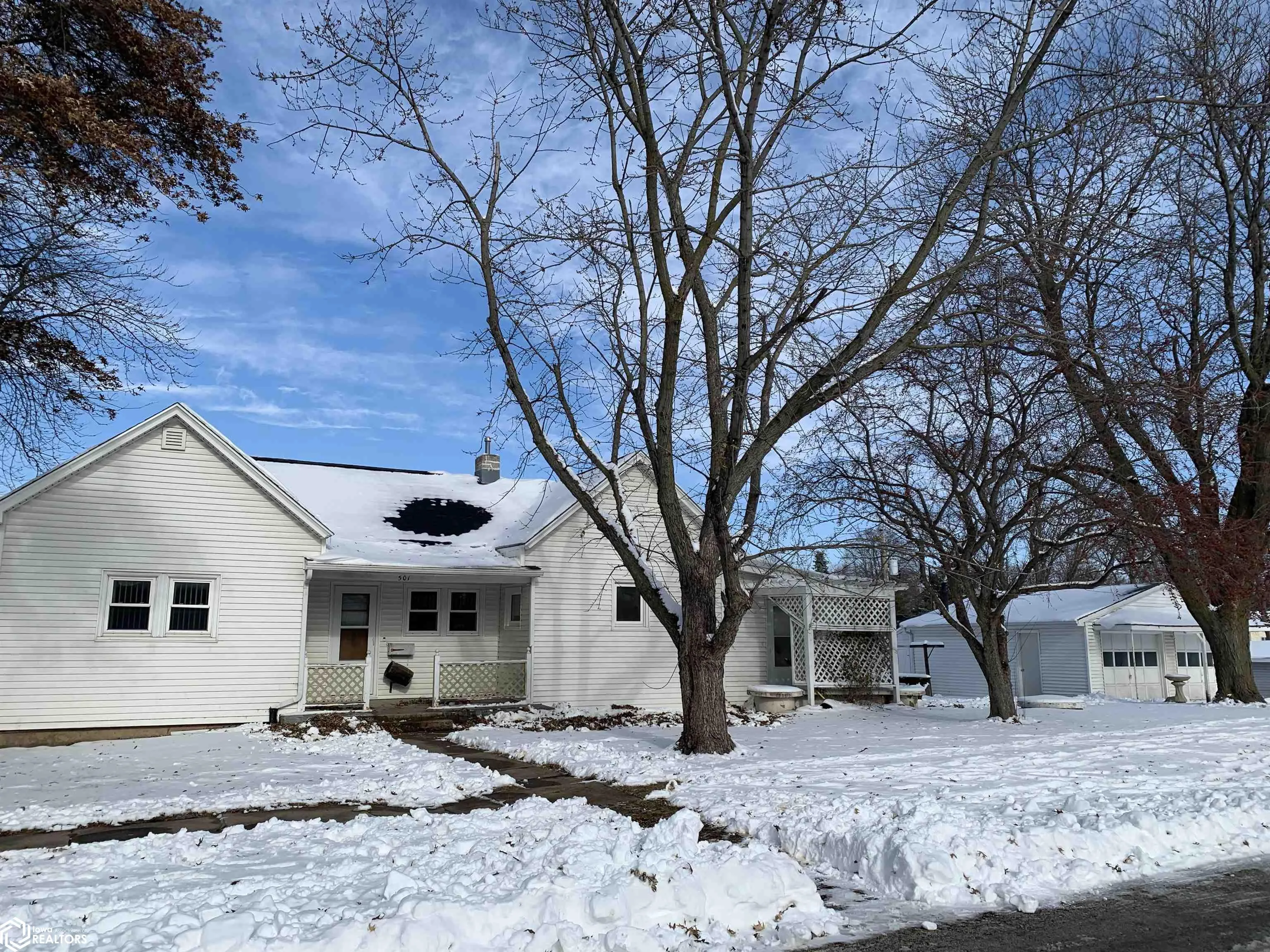 Located on a shady corner lot, this home has a unique layout and property amenities! Livingroom is open to dining room that is open to the eat in kitchen. Hardwood floors under the carpet, roof new in 2023 , vinyl siding, replacement windows and new water heater in 2023. Enter from the east via the detached 2 car garage in to the home to the utility room or company enters from the front door. This home has flow! Outside you have several different sitting venues with east deck and front porch on the south, all in the shade! The detached 2 car garage was built to last with main steel I beam, complete with vehicle oil change pit. Appliances are included but not warrantied. Selling as is. Call for your immediate showing.