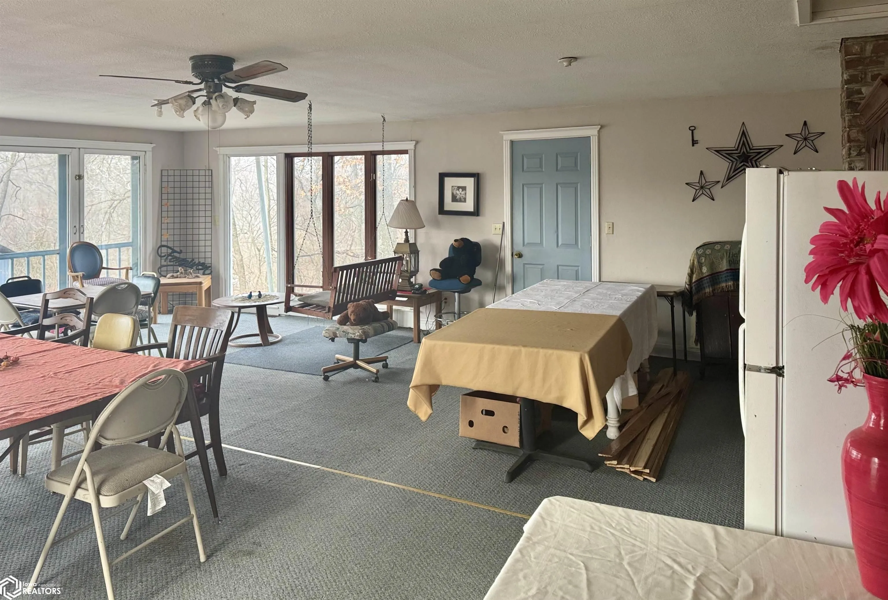 This 3, possibly 4-bedroom, 2-bathroom home on 2.7 acres is located on Highway 34, just 5 miles west of Chariton. The home features both an eat-in kitchen as well as dining room, and a spacious living room filled with natural light from numerous picture windows. A large bonus room over the tuck-under two-car garage provides flexible space for a family room or sunroom with peaceful, scenic views. The home offers both electric baseboard heat as well as a wood stove for heat. This property has a nice garden area along with additional 2-car garage for extra storage. Close to town, on pavement, with many possibilities!