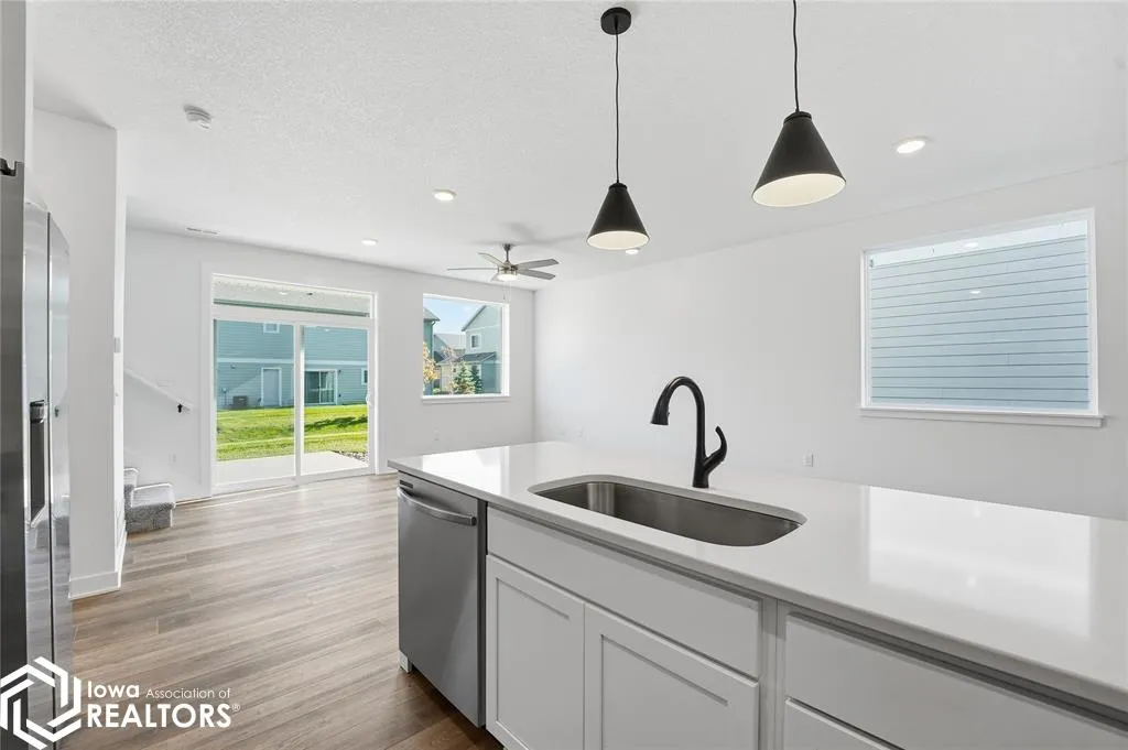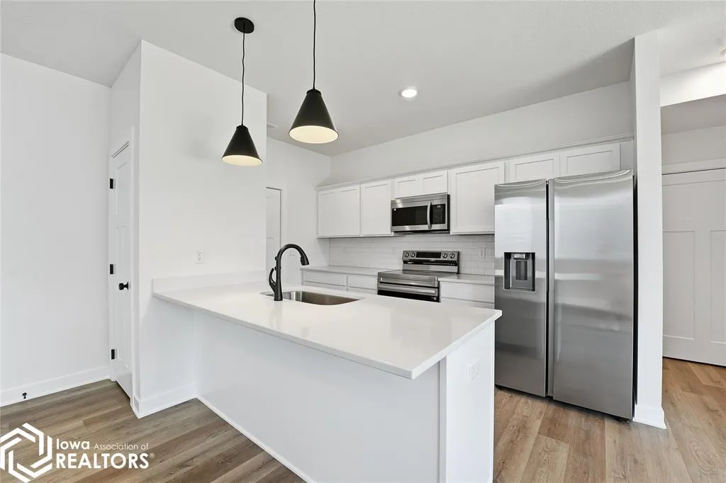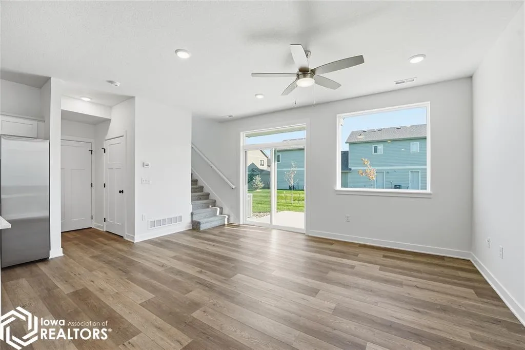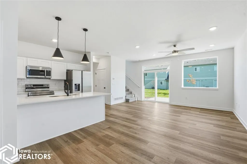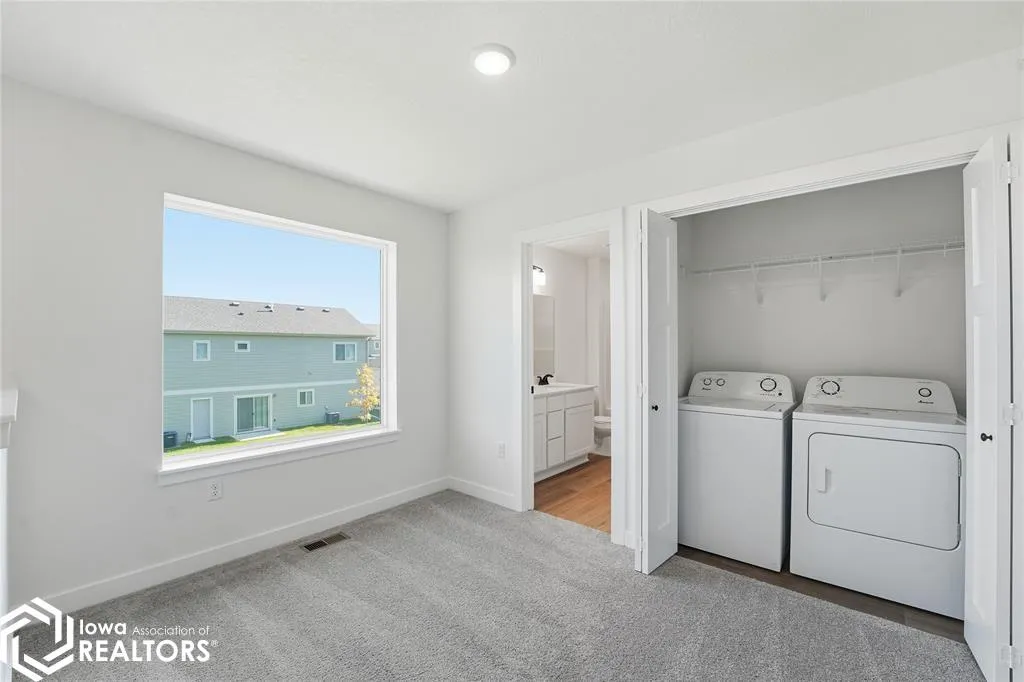 Signature Companies of Iowa presents the Whitfield Townhome a stylish two-story with 2 bedrooms, a loft, 1.5 baths, and an oversized 2-car garage. The open main level features 9′ ceilings, LVP flooring, and large windows that fill the space with natural light. The kitchen impresses with an oversized pantry, large island, quartz countertops, and stainless steel appliances ALL INCLUDED. A convenient half bath completes the main floor. Upstairs, the primary suite offers a walk-in closet with direct access to the full bath, plus another spacious bedroom and a versatile loft for an office or flex space. Laundry area includes washer and dryer. Irrigation, lawn care, and snow removal are all handled for you. Centrally located in Waukee with a bike trail just outside the development. Pet-friendly community.