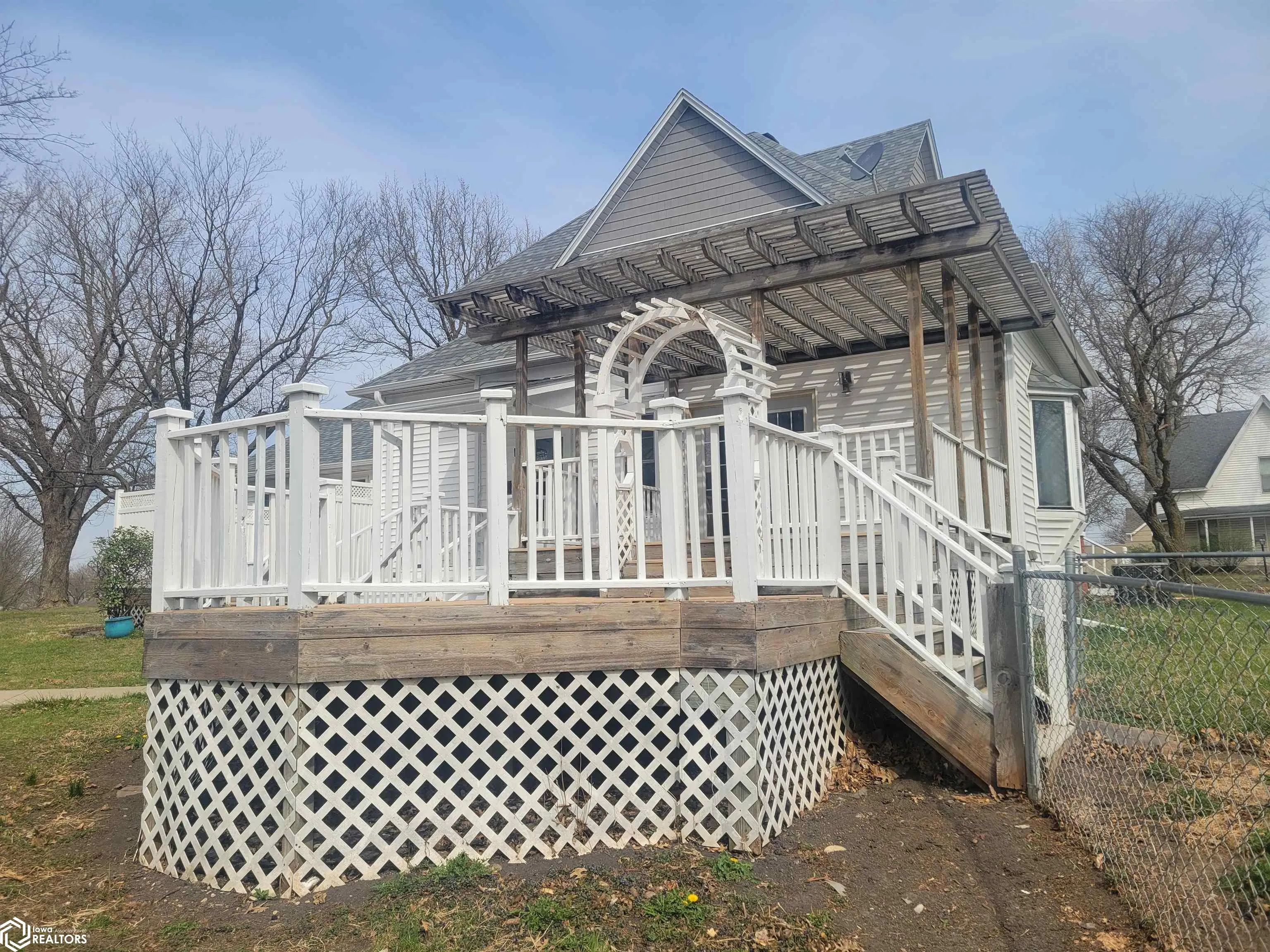 The square footage in this home is amazing! There’s 4 roomy bedrooms, two full baths, laundry, on the main level and 1/2 bath upstairs. Those are the basic facts of many homes but this one has many other modern and old world features buyers love. A beautiful solid wood staircase is the center point of the main level living space which is surrounded by a dining room, kitchen, living room, with wood fireplace and additional living room or family room with gas fireplace, large bedroom with jetted tub, walk in closet and private bath. There’s a finished basement family room with new drywall and carpet and also an older basement which houses utilities. This home has so much to offer; it is quite a unique property. Outside there’s an oversized detached 2 car garage, large octagonal deck with trex flooring, a smaller partially enclosed wood deck and wrap around porch on the E and N sides. The fenced in yard is perfect for your pets pleasure and safety. There’s just so much to love about this property which has just been recently updated with fresh paint throughout the interior and most of the decking. It’s one you have to see to appreciate the expansive room you will love for entertaining friends and family or just sneaking away to your own part of the house to read a book away from the hubbub of those same family and friends. It’s on two city lots in a great part of town close to the amenities our booming beautiful Mount Ayr offers!