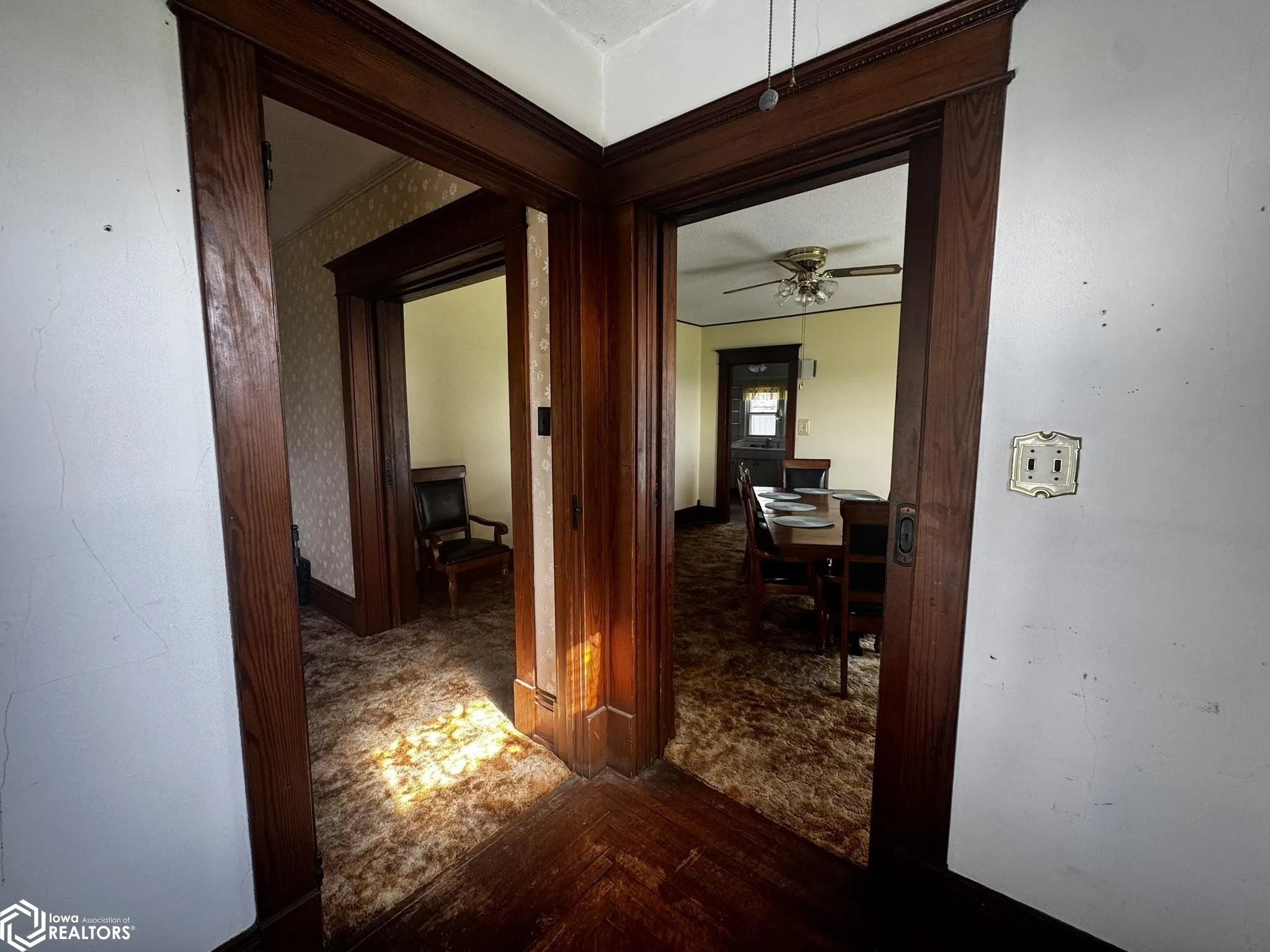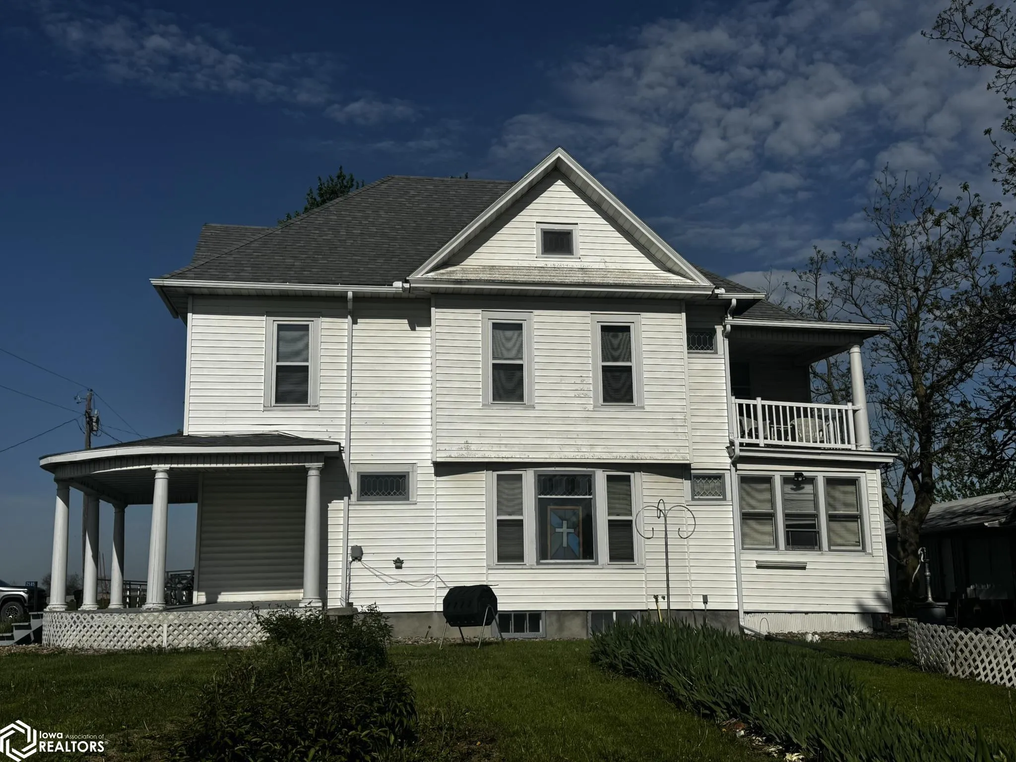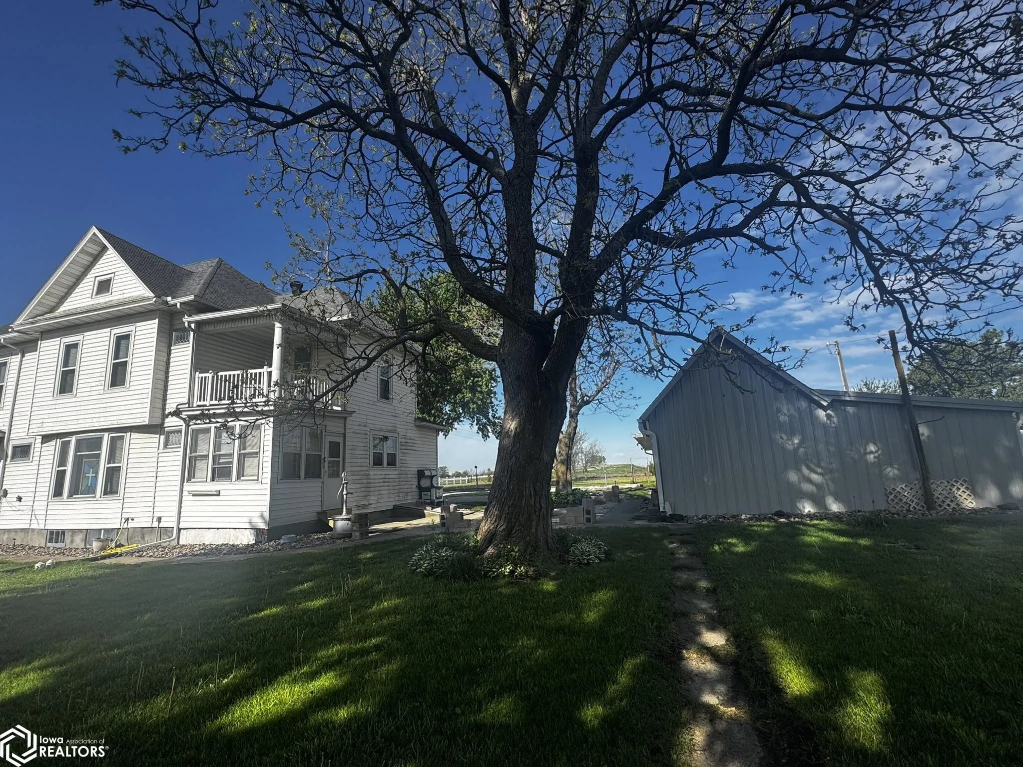 Have you been looking for a place at the edge of town. Perhaps a well maintained 2 story? This lovely home just came on the market and is ready for new owners. It features an sunlit enclosed rear porch, country kitchen with views of the patio, full formal dining room, living room, family room, and a downstairs bedroom. All complete with original woodwork and pocket doors. Front foyer opens to a wrap around front porch! The second floor has 4 large bedrooms with large closets. There is an extra room that was once used as a kitchen but now is a craft room. It has a door that leads out to the balcony alcove that would be perfect to have morning coffee on! This extra room might be nice to put a second story laundry in! By the way, there is a clothesline. The main has the laundry/full bath and the second level has a full bath with clawfoot tub. The attic could be a usable space as it is large and spacious. The basement has stone wall that well-built and sturdy. there is an access from the basement to the outdoors. Need garage space, this home has a 3-car garage, lean to small garage, a smoke house/workshop and 1 separate 1 car garage by the garden area. Owners have built an parking area for an RV or any can of trailer you may need space for. Propane tank is leased. This all sits and just about 1 acre m/l.